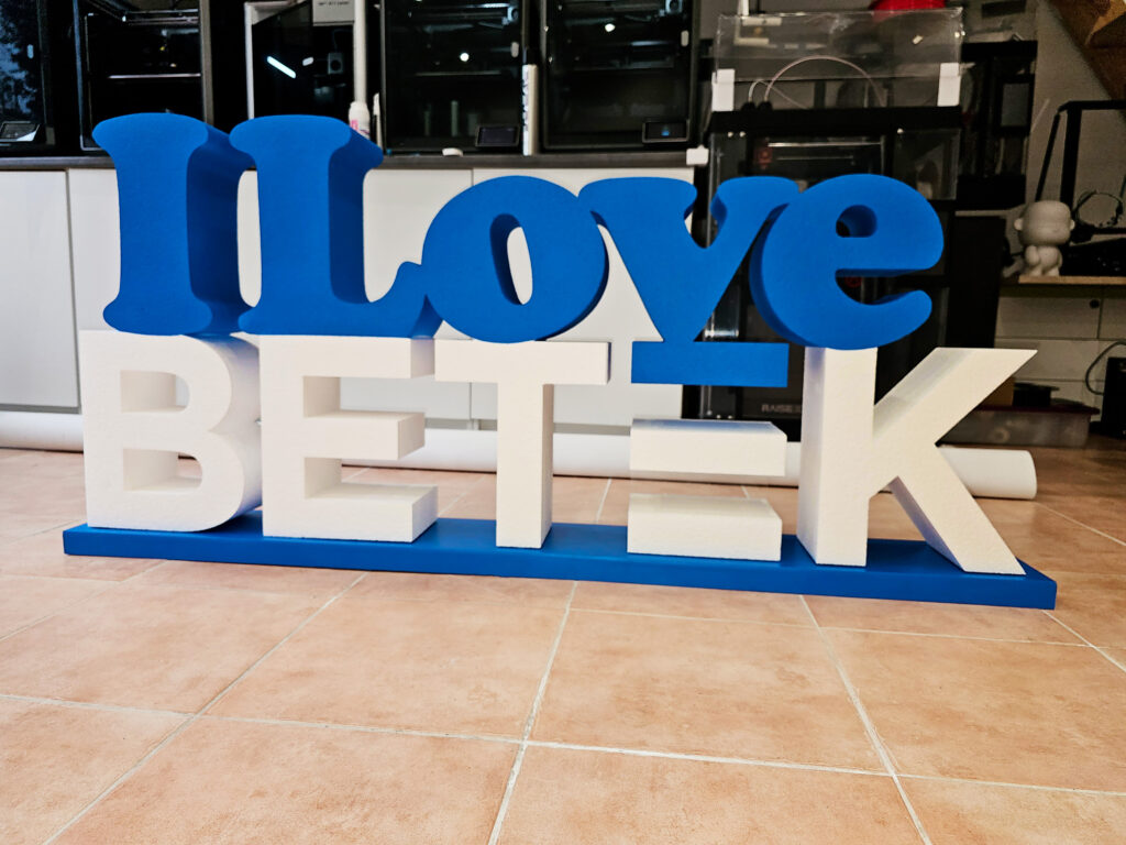 Dernier exemple en date : la commande urgente de Betek Ingénierie, entreprise basée dans les Alpes-Maritimes, pour une sculpture en polystyrène sur mesure avec les mots « I Love Betek ». L’objectif : une structure légère, colorée, impactante, livrée en moins d’une semaine.