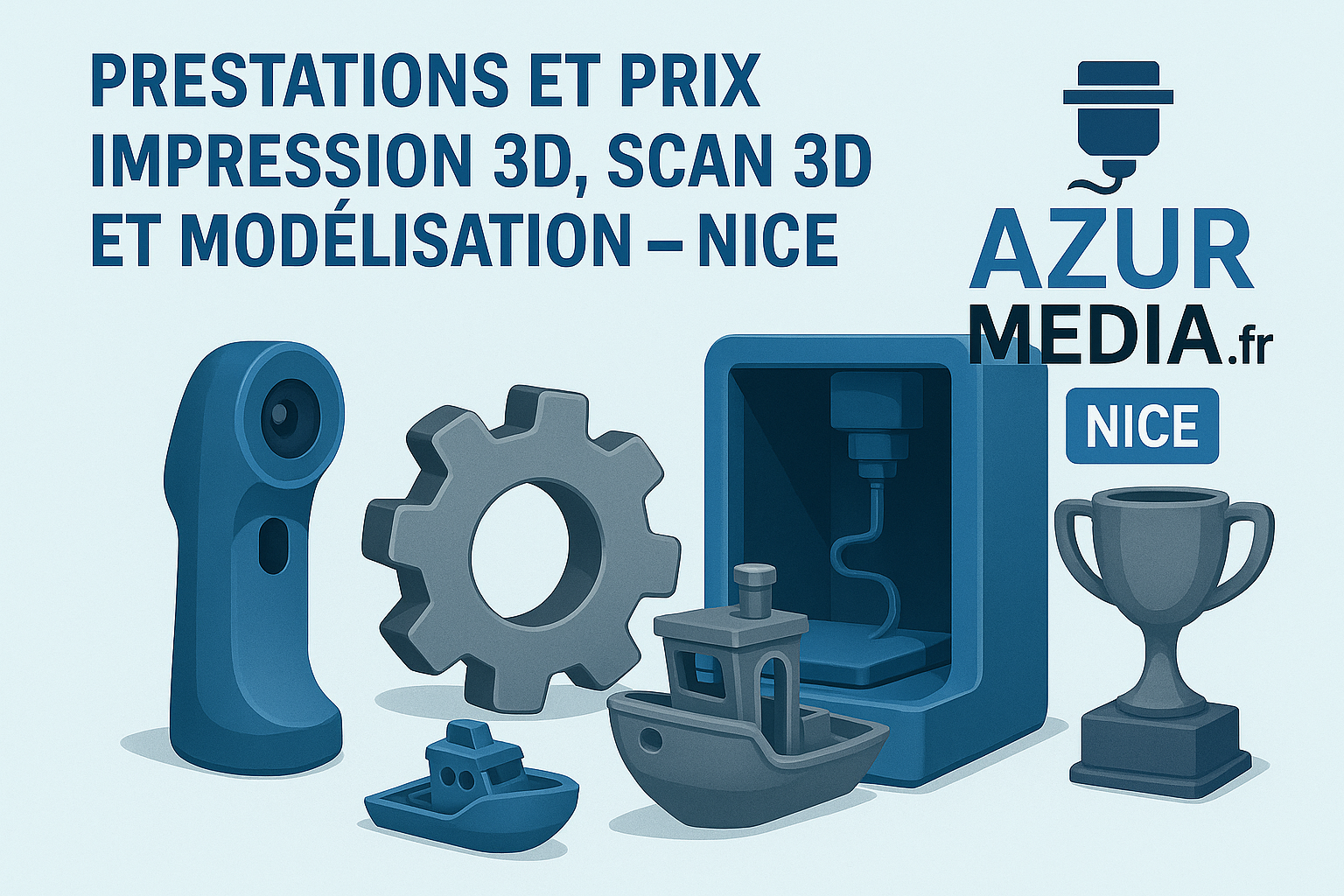 Bienvenue sur la page dédiée aux tarifs et délais d’AzurMedia.fr pour les services de fabrication additive, scan 3D et modélisation 3D à Nice et dans les Alpes-Maritimes.